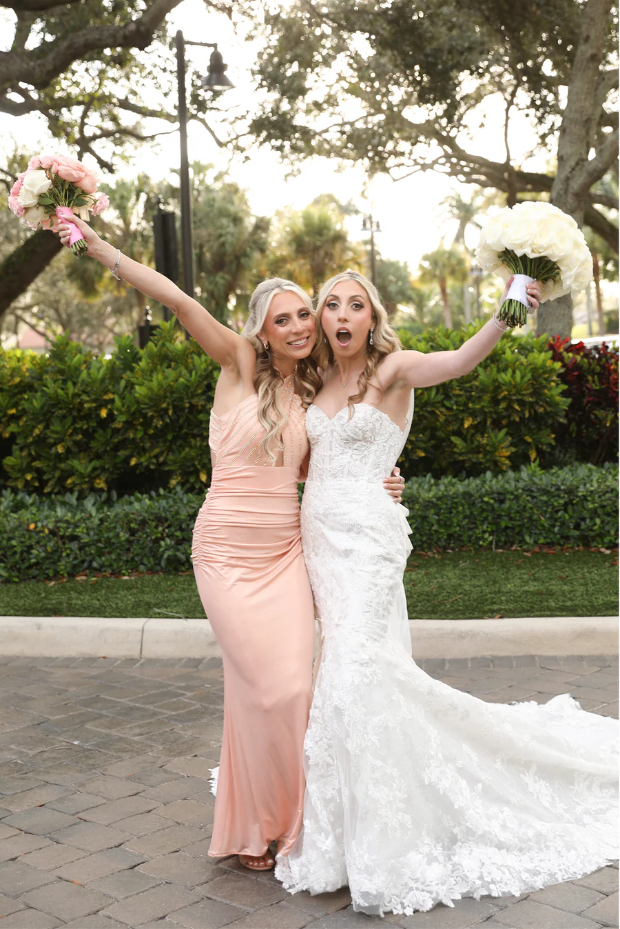 We’re Brooke and Hallie: sisters by birth, bridesmaids by… apparently everyone’s choice. After standing up in more weddings than we can count, we noticed a pattern: gorgeous dresses worn once and then forgotten. That’s when the idea for Bridestrades came to life — a way to give those dresses a second chance while helping bridesmaids across the country save money, share styles, and make the most of their investment!