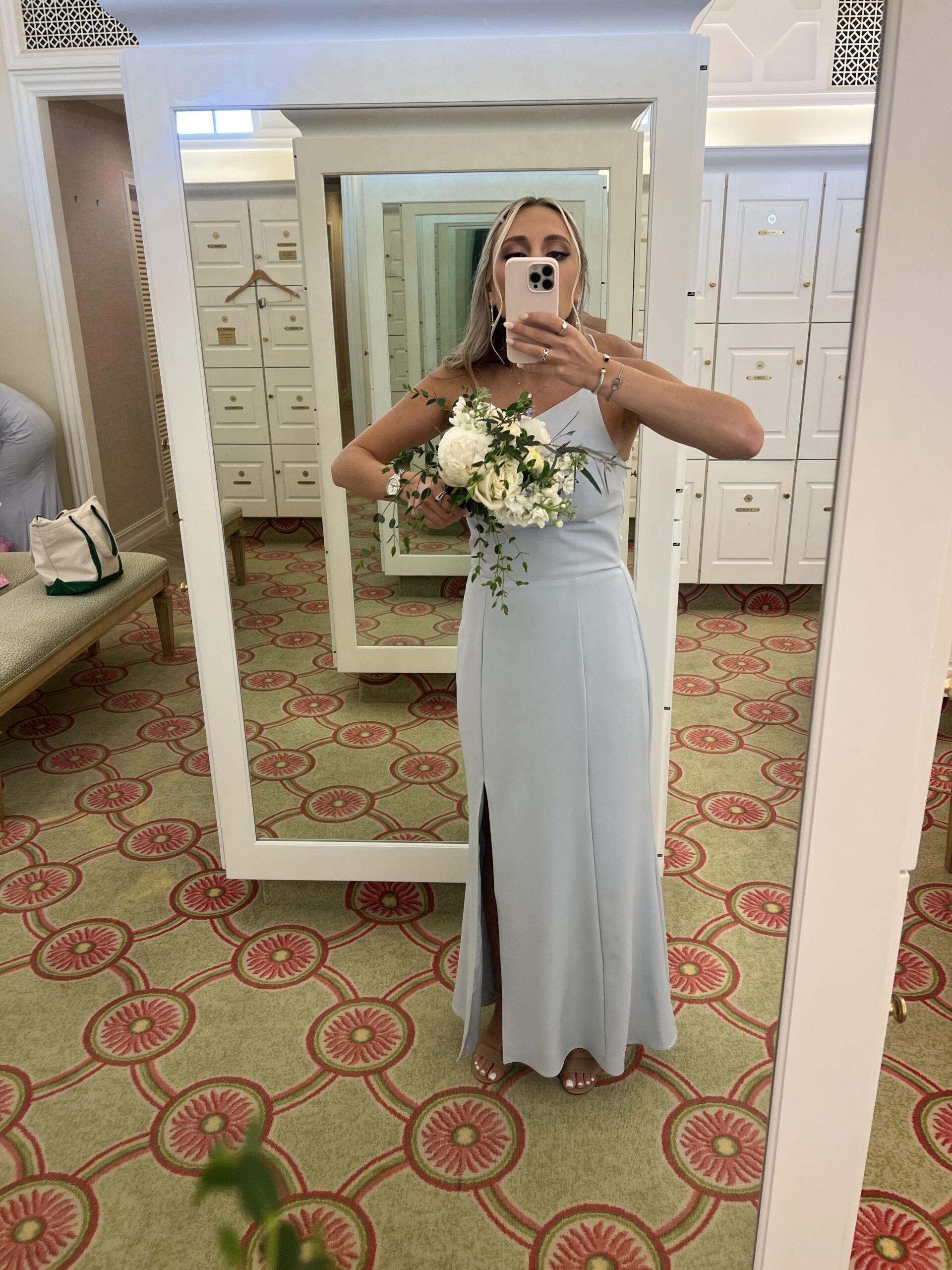 Amsale Bella Bridesmaid Dress – New ice color size 8- only worn once in great condition. Hemmed for 5’4 and 2 inch heels!
