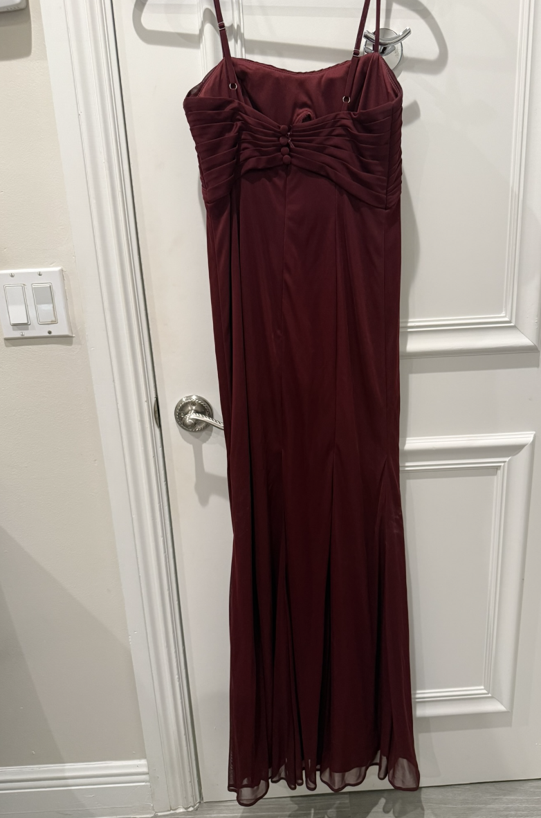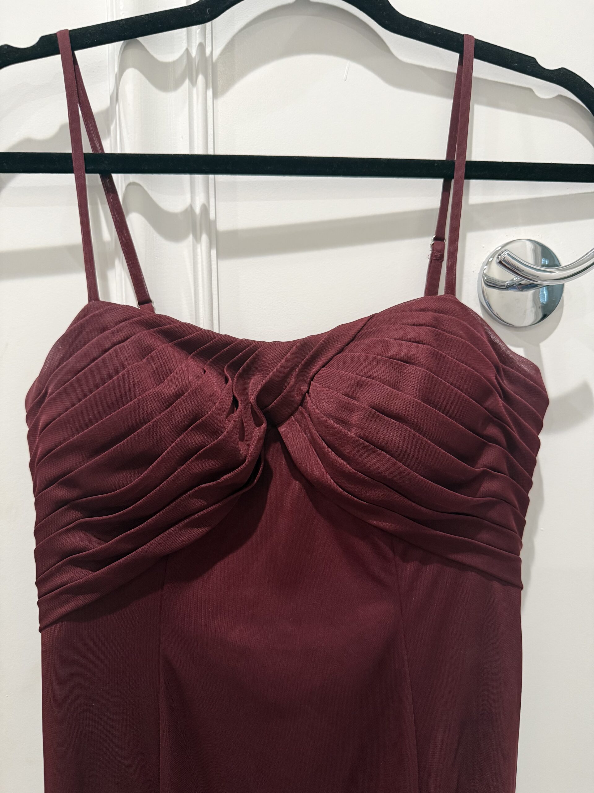 Azazie Prim Dress. Size A6 in the color Cabernet. Hemmed for 5’4 in 2 inch heels. Only worn once in good condition, minus a few tiny stains (not obvious
